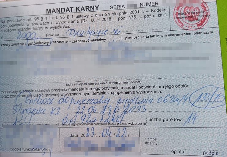 Słoneczna pogoda skusiła go do szybkiej jazdy. Dostał 2000 zł mandatu