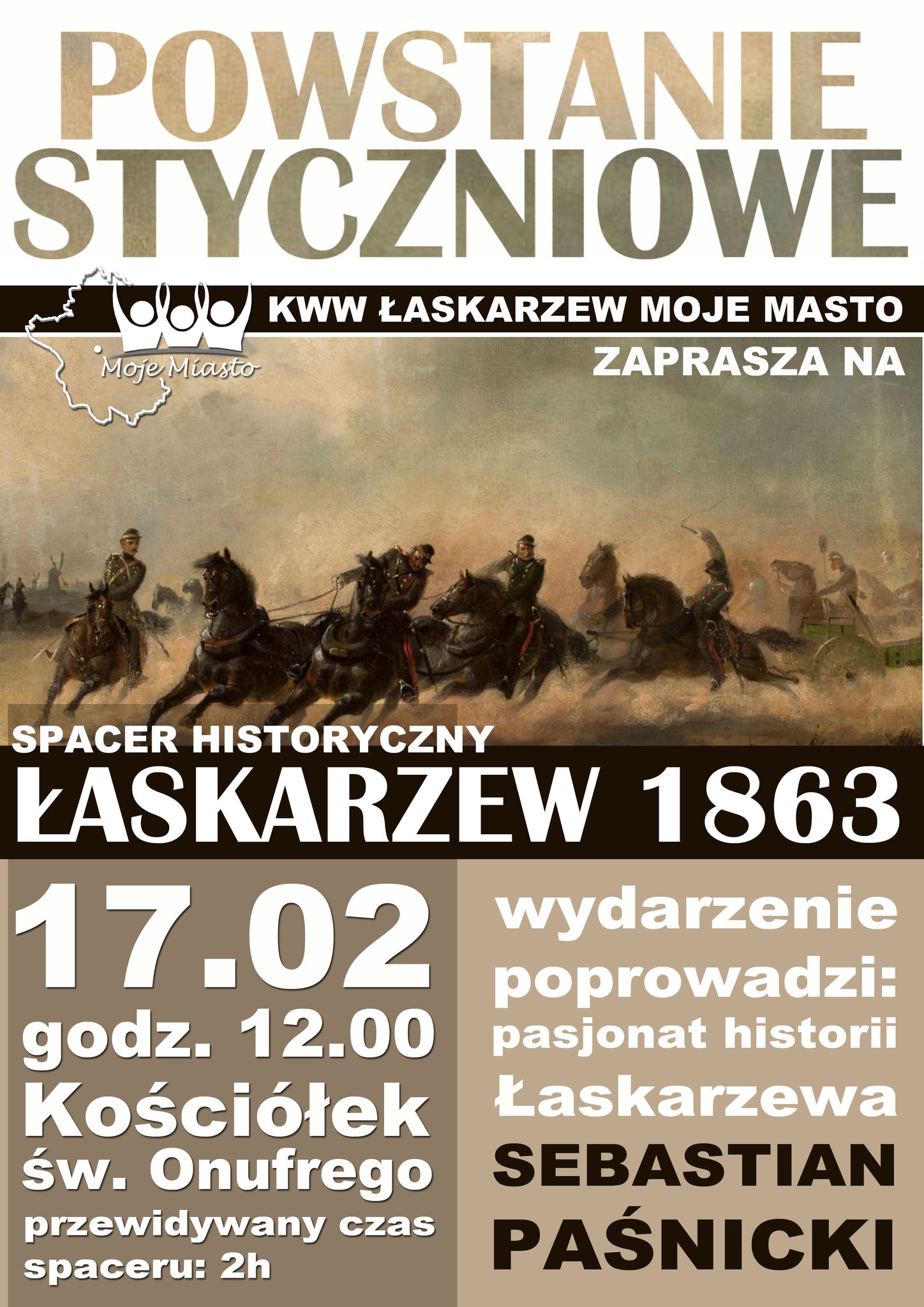 W sobotę, 17 lutego w Łaskarzewie odbędzie się spacer historyczny dotyczący powstania styczniowego. Chętni spotkają się o godzinie 12:00 w kościółku św. Onufrego. Przewidywany czas spaceru to 2 godziny.