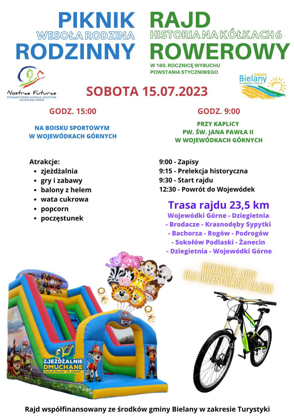 Najbliższa sobota, 15 lipca w Wojewódkach Górnych w Gminie Bielany zapowiada się interesująco. O godzinie 9:30 rozpocznie się rajd rowerowy pod hasłem „Historia na kółkach”. Po południu organizatorzy zapraszają na piknik rodzinny z mnóstwem atrakcji.