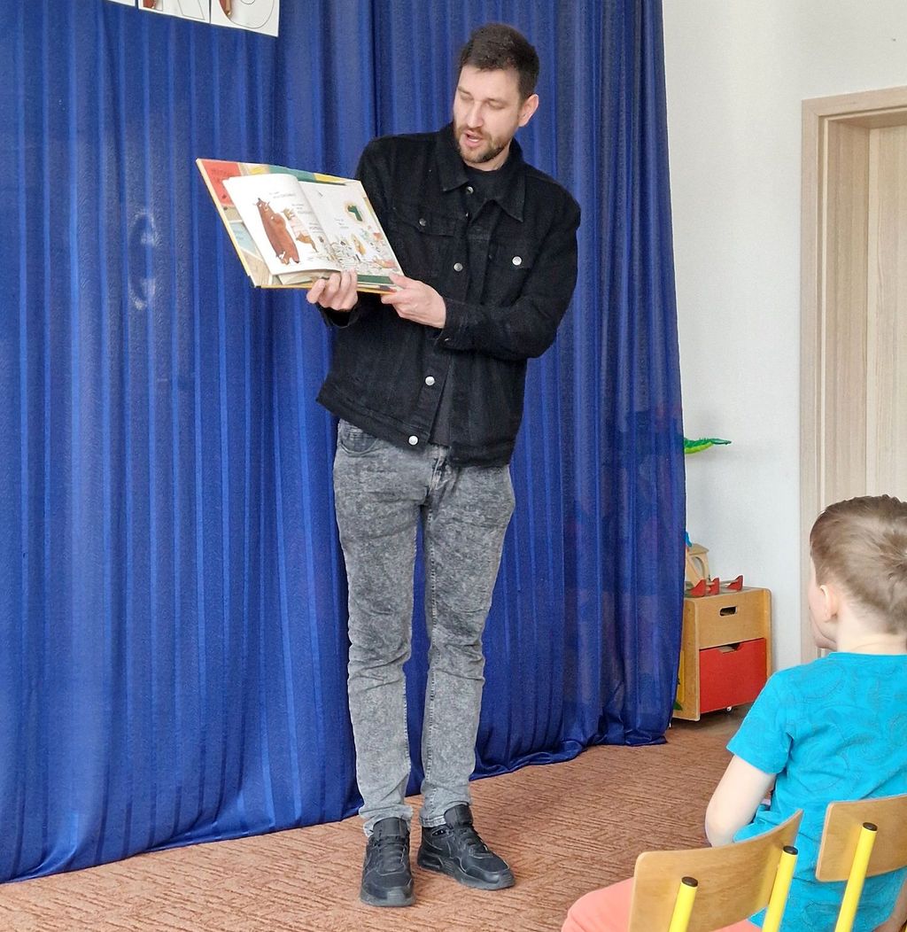 Spotkanie przedszkolaków z Robertem Protasewiczem, aktorem siedleckiego Teatru ES, kompozytorem, wokalistą, multiinstrumentalistą, instruktorem teatralno-wokalnym, scenarzystą, scenografem i reżyserem oraz laureatem Wawrzyna Siedleckiego w dziedzinie kultury, odbyło się 12 kwietnia. Zorganizowała je nauczycielka przedszkola Agnieszka Okołotowicz. Jak czytamy w nadesłanej do nas relacji, gość zdradził przedszkolakom tajniki pracy aktorskiej. Z ogromną pasją opowiedział także o rolach, w jakie wcielał się na teatralnych deskach. Przeczytał dzieciom niezwykłą opowieść o Gryzaku – uroczym potworku, który uwielbia wgryzać się w smakowite historie.