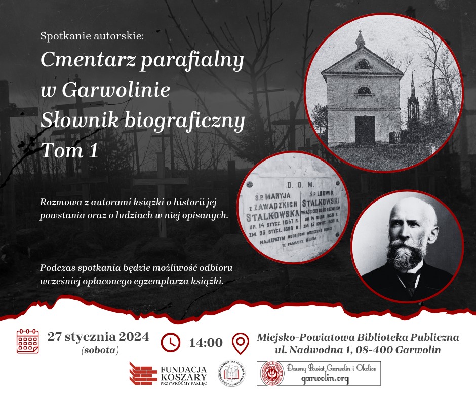 Spotkanie odbędzie się w najbliższą sobotę, 27 stycznia o godz. 14:00 w Miejsko – Powiatowej Bibliotece Publicznej w Garwolinie przy ul. Nadwodnej 1. „Podczas tego wyjątkowego wydarzenia, opowiemy o fascynujących losach osób spoczywających na cmentarzu, podzielimy się kulisami powstawania książki oraz pokażemy, jak wspólnie z lokalną społecznością udało nam się odkryć i uwiecznić nieznane dotąd historie. Spotkanie to będzie doskonałą okazją do rozmów, wymiany poglądów oraz podzielenia się własnymi historiami i informacjami na temat osób związanych z naszym miastem. Jesteśmy otwarci na nowe spojrzenia i zgłaszanie dodatkowych informacji, które mogą wzbogacić naszą wiedzę. Zapraszamy wszystkich miłośników lokalnej historii, entuzjastów genealogii oraz wszystkich, którzy pragną poznać tajemnice Garwolińskiego cmentarza” – zapraszają pasjonaci historii.Podczas spotkania będzie możliwość odebrania wcześniej zamówionych egzemplarzy książki.