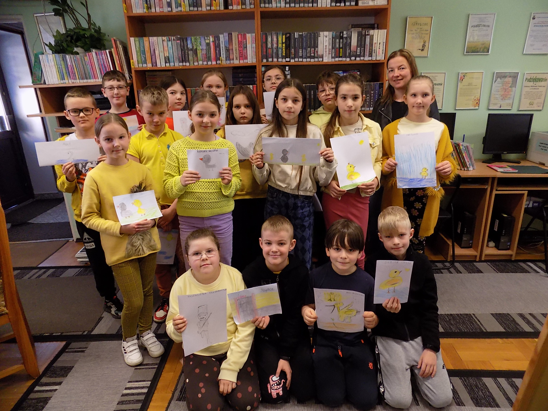 W bibliotece gościły dzieci z kl. III a z wychowawczynią Anną Wyszogrodzką. Podczas wizyty dzieci poznały życiorys pisarza, wzięły udział w quizie ze znajomości baśni Andersena, były także zajęcia praktyczne polegające m. in. na odgadywaniu tytułów utworów Andersena na podstawie rekwizytów. Nie zabrakło także teatrzyku Kamishibai, a w nim „Brzydkiego kaczątka”. Na koniec spotkania uczestnicy wykonali ilustrację do znanych baśni Andersena. Tradycją na koniec jest także wspólne zdjęcie.Kwiecień to obchody: Międzynarodowego Dnia Książek dla Dzieci i Światowego Dnia Książek i Praw Autorskich, jednocześnie więcej działań instytucji takich jak biblioteka, by wzmocnić i zaprosić do czytania, pokazać i przybliżyć autorów książek. W poniedziałkowy poranek 24 kwietnia 2023 do biblioteki przybyła kl. III b z Małgorzatą Wiąckiewicz i Agnieszką Romańczuk. Na początek przypomnieliśmy jaką rolę spełnia biblioteka, jakie posiada książki, a potem lekcja biblioteczna w krainie baśni H. CH. Andersena, jego życie i twórczość. To był początek tego wyjątkowego spotkania. Na uczniów czekały kolejne zadania m. in. zajęcia polegające na czytaniu fragmentów utworów i odgadywanie z jakiej to bajki, quiz ze znajomości tytułów baśni, odgadywanie baśniowych rekwizytów jak również dobieranie ilustracji do odpowiedniej bajki. Uczniowie oglądali także różne wydania baśni H. CH. Andersena. Czytaliśmy także teatrzyk Kamishibai, a w nim „Brzydkie kaczątko”. Podsumowaniem lekcji było wykonanie ilustracji do ulubionej bajki autora oraz wspólne zdjęcie. Dziękujemy za wspólnie spędzony czas, zapraszamy ponownie, a uczniów zachęcamy do częstego odwiedzania biblioteki.