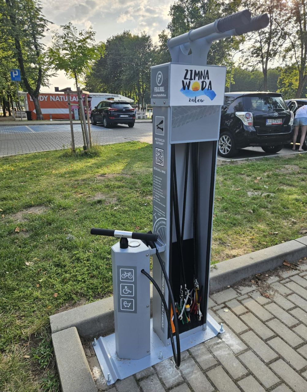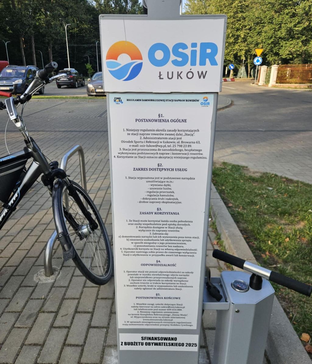 Nad zalewem Zimna Woda w Łukowie powstała stacja naprawy rowerów. Jej montaż sfinansowano ze środków Łukowskiego Budżetu Obywatelskiego.