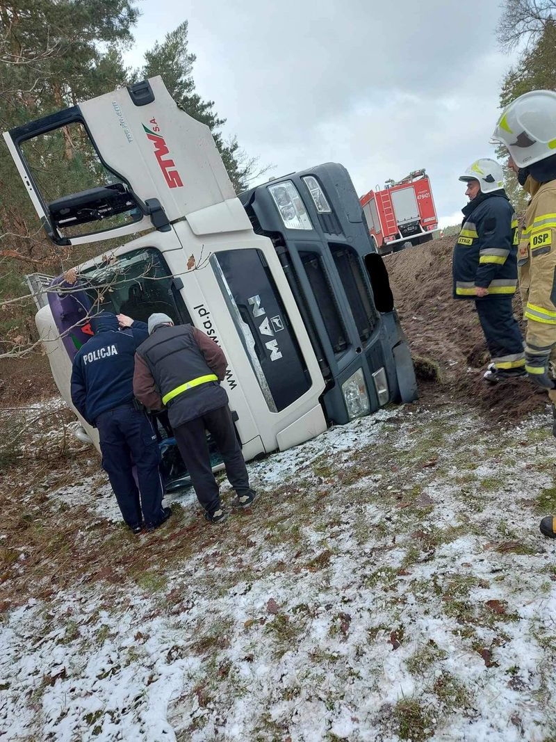 W sobotę, 23 grudnia w okolicach miejscowości Tonkiele w gminie Siemiatycze do przydrożnego rowu wjechała ciężarówka - cysterna typu paszowóz. Interweniował 1 zastęp straży pożarnej.