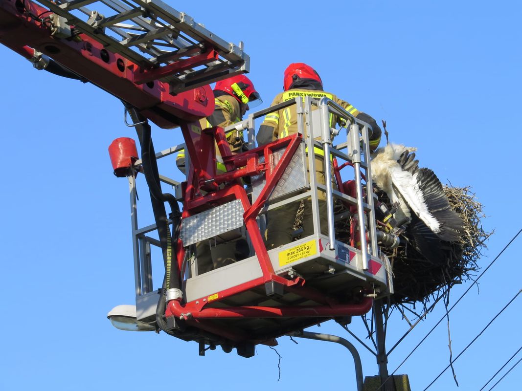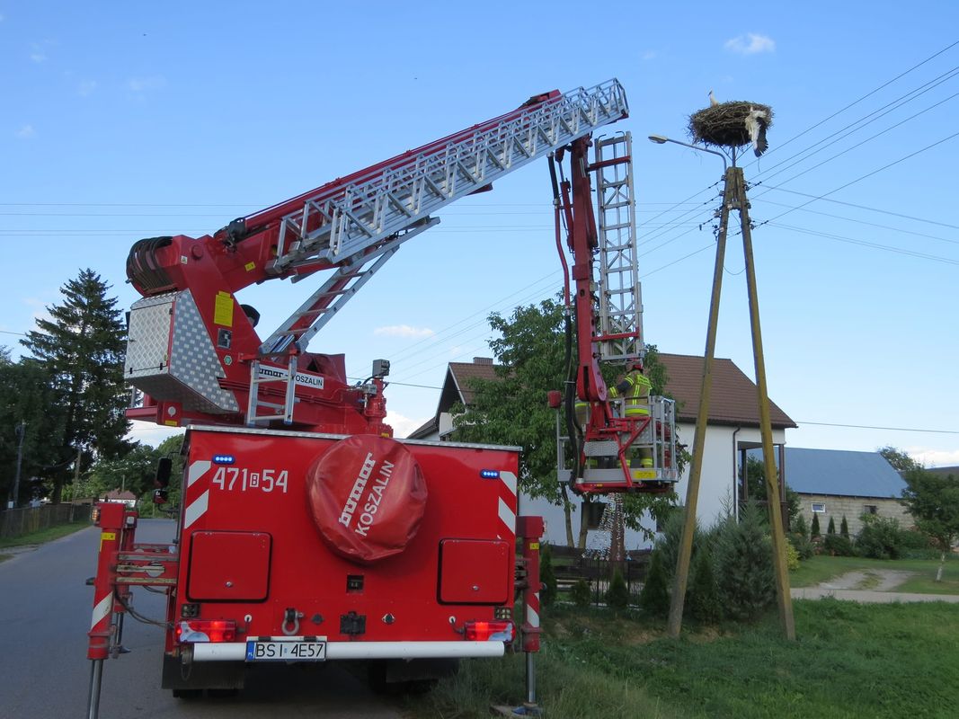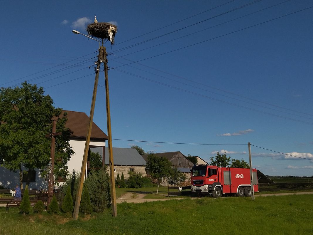 Jak informuje kpt. Krzysztof Orzepowski z KP PSP Siemiatycze, w Boguszach Starych (gm. Grodzisk) bocian uwięziony za nogę zwisał z gniazda. Akcje rozpoznało OSP Grodzisk. Okazało się, że gniazdo jest na słupie elektrycznym, bocian jest martwy, a jego noga jest zaplątana w sznurek, dlatego ptak zwisa przy gnieździe nad liniami energetycznymi.Do zdarzenia zadysponowano podnośnik z JRG Siemiatycze oraz Pogotowie Energetyczne. Pogotowie odłączyło prąd na czas zdejmowania bociana ze względu na bezpieczeństwo ratowników, którzy pracowali z użyciem podnośnika. Martwy ptak został przekazany pracownikowi Urzędu Gminy Grodzisk.