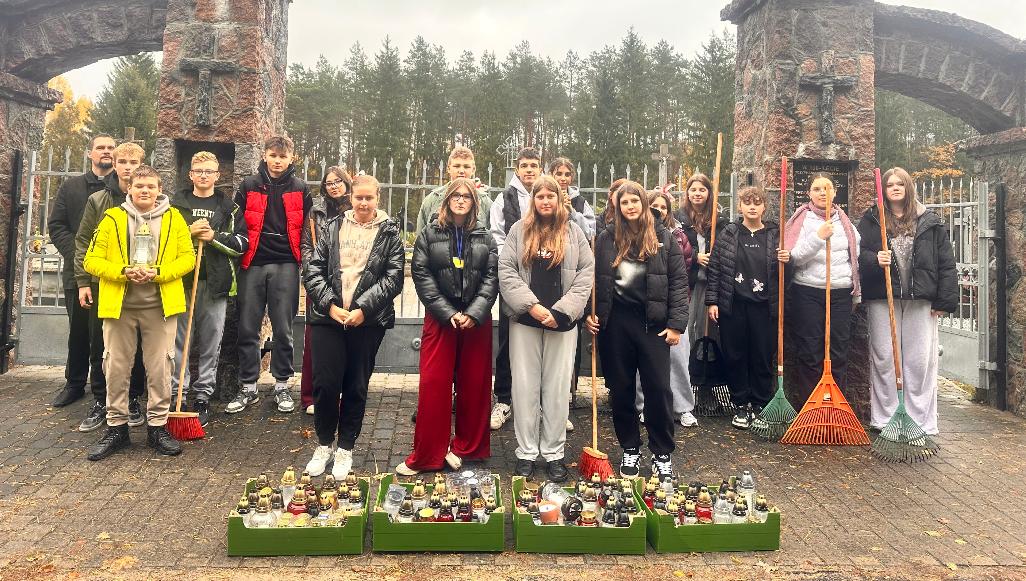 Wspólna akcja uczniów i nauczycieli odbyła się 29 października. - Działania te miały na celu nie tylko uporządkowanie grobów, ale także były wyrazem szacunku i pamięci o tych, którzy odeszli. Uczniowie z zaangażowaniem i troską sprzątali zaniedbane zakątki cmentarza, usuwając liście i śmieci oraz dbając o estetykę tego miejsca – czytamy w relacji nadesłanej do nas przez Agatę Dawidek i Edytę Romać.Kiedy cmentarz został już posprzątany uczniowie zapalili symboliczne „światełka pamięci” na grobach zmarłych nauczycieli, pracowników szkoły, osób znanych w lokalnym środowisku oraz na opuszczonych grobach, które też potrzebują troski i pamięci. Znicze zostały zebrane podczas corocznej akcji organizowanej przez Szkolne Koło Wolontariatu „Pomocna dłoń”.