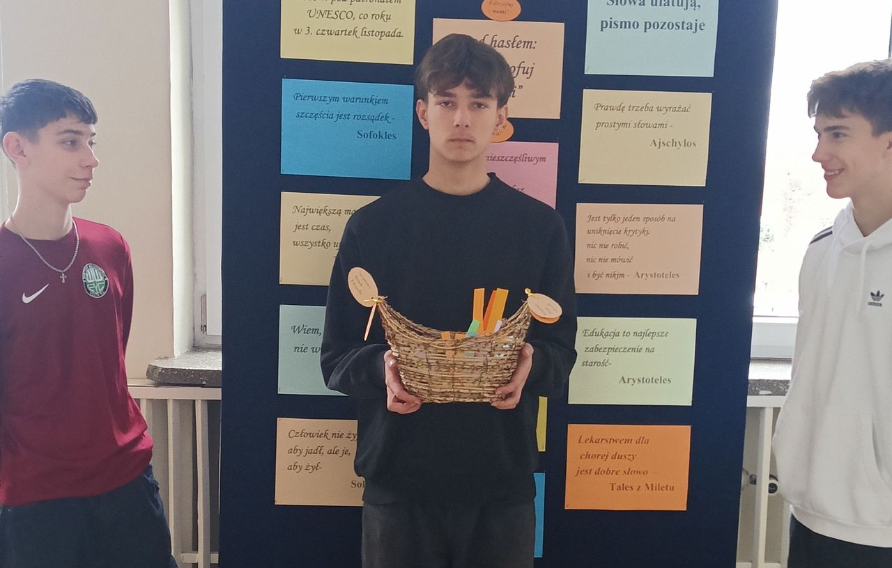 Światowy Dzień Filozofii obchodzony był 20 listopada. Pamiętali o nim uczniowie i nauczyciele w łukowskich „Alejach”. Biorąc udział ,,filozofowaniu” każdy miał okazję wylosować dla siebie z ,,koszyczka filozofii” karteczkę z cytatem filozofa. - Słowa te miały wzbudzić w uczniach refleksję na temat postrzegania rzeczywistości oraz zachęcić do zgłębiania wiedzy filozoficznej – opowiada o akcji jej organizatorka, nauczycielka Beata Kuczyńska.W akcję włączyły się uczennice klas 4 Th i 2 Wa. To one zachęcały do losowania i "filozofowania".