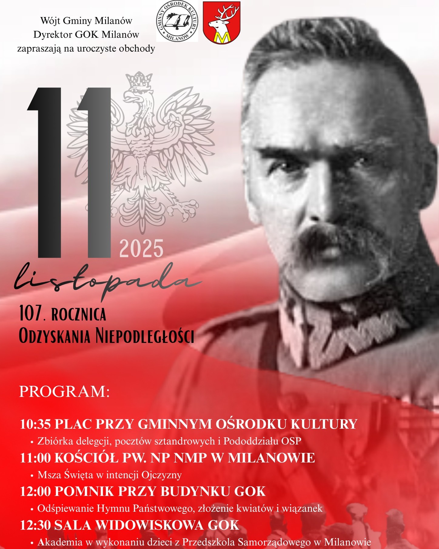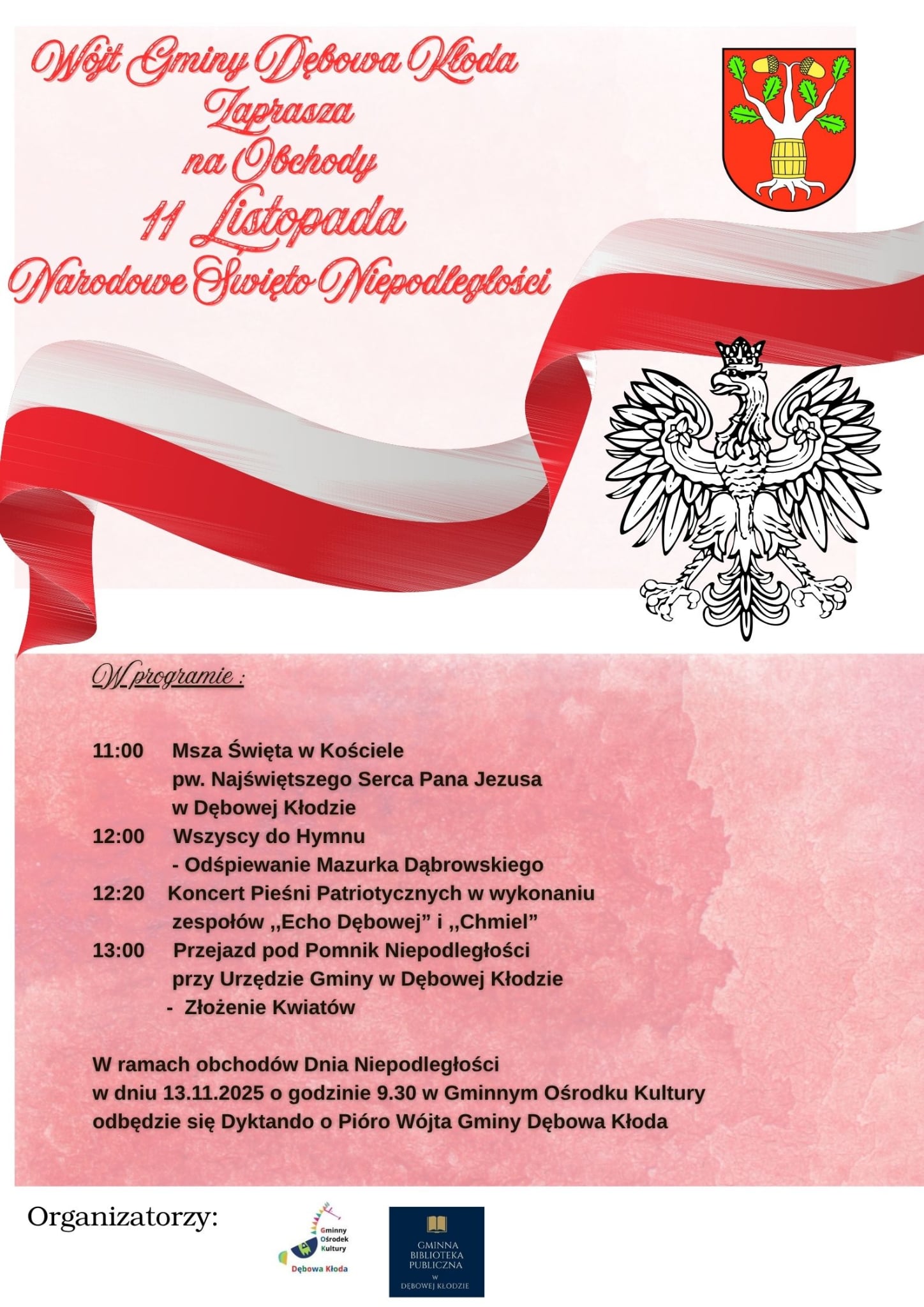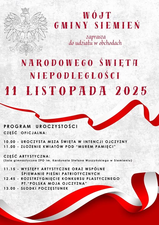 We wtorek, 11 listopada, samorządy gmin powiatu parczewskiego zapraszają mieszkańców do wspólnego świętowania Narodowego Święta Niepodległości. W planach uroczystości Msze święte w intencji Ojczyzny, złożenie kwiatów i zapalenie zniczy, przemówienia i akademie okolicznościowe.![]() |