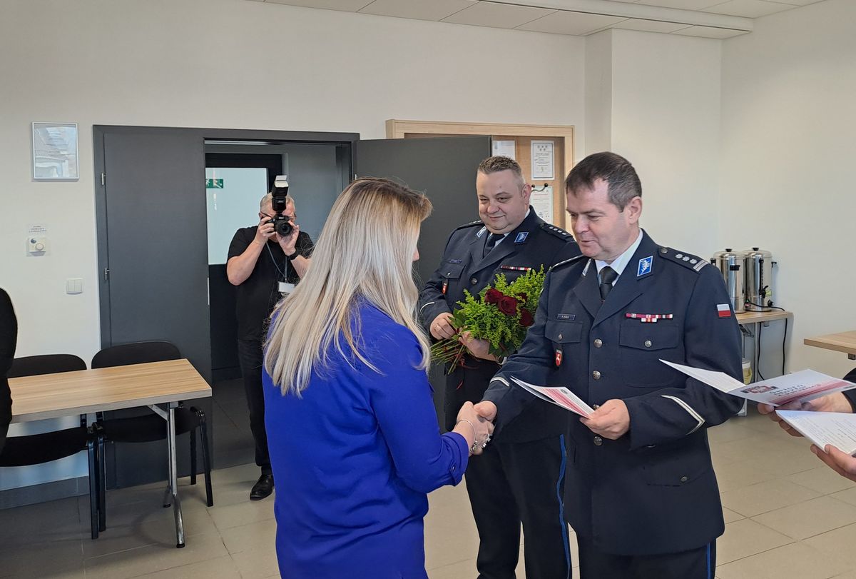 Z tej okazji Komendant Powiatowy Policji w Rykach inspektor Kazimierz Kula oraz I Zastępca Komendanta Powiatowego Policji w Rykach nadkomisarz Łukasz Walo wręczyli pracownikom ryckiej komendy oraz dęblińskiego komisariatu okolicznościowe podziękowania za codzienny trud ponoszony w ramach wykonywanych obowiązków służbowych.
