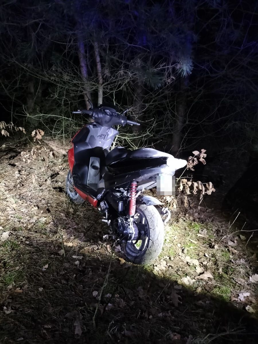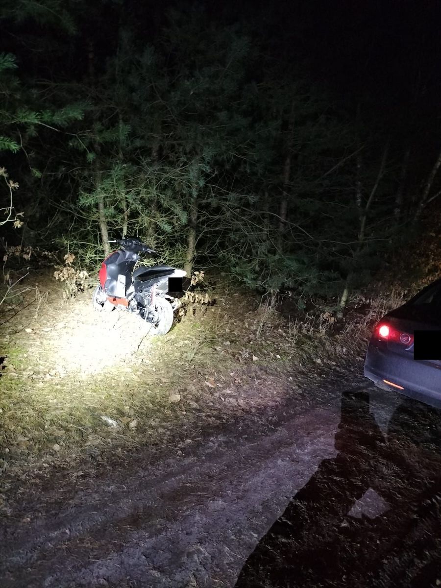 22 lutego po godzinie 20:30 dyżurny ryckiej komendy otrzymał zgłoszenie od mężczyzny, który powiadomił, że jadąc przez las motorowerem wywrócił się. Dodał, że doznał urazu nogi, która jest uwięziona pod przewróconym skuterem.Na miejsce opisane przez zgłaszającego wysłano patrol Policji. Jednakże mężczyzny i pojazdu nie zastano. W związku z zagrożeniem, w jakim się znajdował, zaangażowano liczniejsze siły policyjne i rozszerzono obszar poszukiwań. Policję wsparli strażacy z Państwowej Straży Pożarnej w Rykach oraz druhowie z Ochotniczych Straży Pożarnych w Swatach i Leopoldowie wraz z dronem i quadami. Do działań wykorzystano dwa śmigłowce.