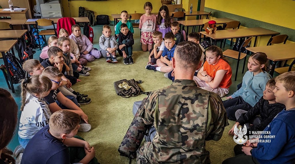 W poniedziałek 6 maja rozpoczął się program edukacyjno-obronny „Edukacja z wojskiem” - przygotowany i realizowany we współdziałaniu Ministerstwa Edukacji Narodowej i Ministerstwa Obrony Narodowej. Do projektu zaangażowano w sumie 13 brygad WOT – w tym 5 Mazowiecką Brygadę Obrony Terytorialnej. Żołnierze 5 MBOT mają już za sobą pierwsze spotkanie z dziećmi szkół podstawowych w Lisewie (powiat płoński) i Siedlcach. Kolejne szkolenia w ramach programu zaplanowane są m.in. w powiatach: ostrowskim, ostrołęckim, ciechanowskim, przasnyskim, siedleckim, sokołowskim, węgrowskim, wołomińskim, pułtuskim i legionowskim.Zajęcia przeprowadzone przez ciechanowskich i siedleckich terytorialsów obejmowały teorię i praktykę z zakresu wojskowości, obronności i bezpieczeństwa, pomocy medycznej oraz obrony cywilnej. Uczniowie zapoznali się m.in. z zasadami alarmowania, sposobami szukania i wzywania pomocy, podstawami ewakuacji i schronienia oraz nawykami udzielania pomocy.