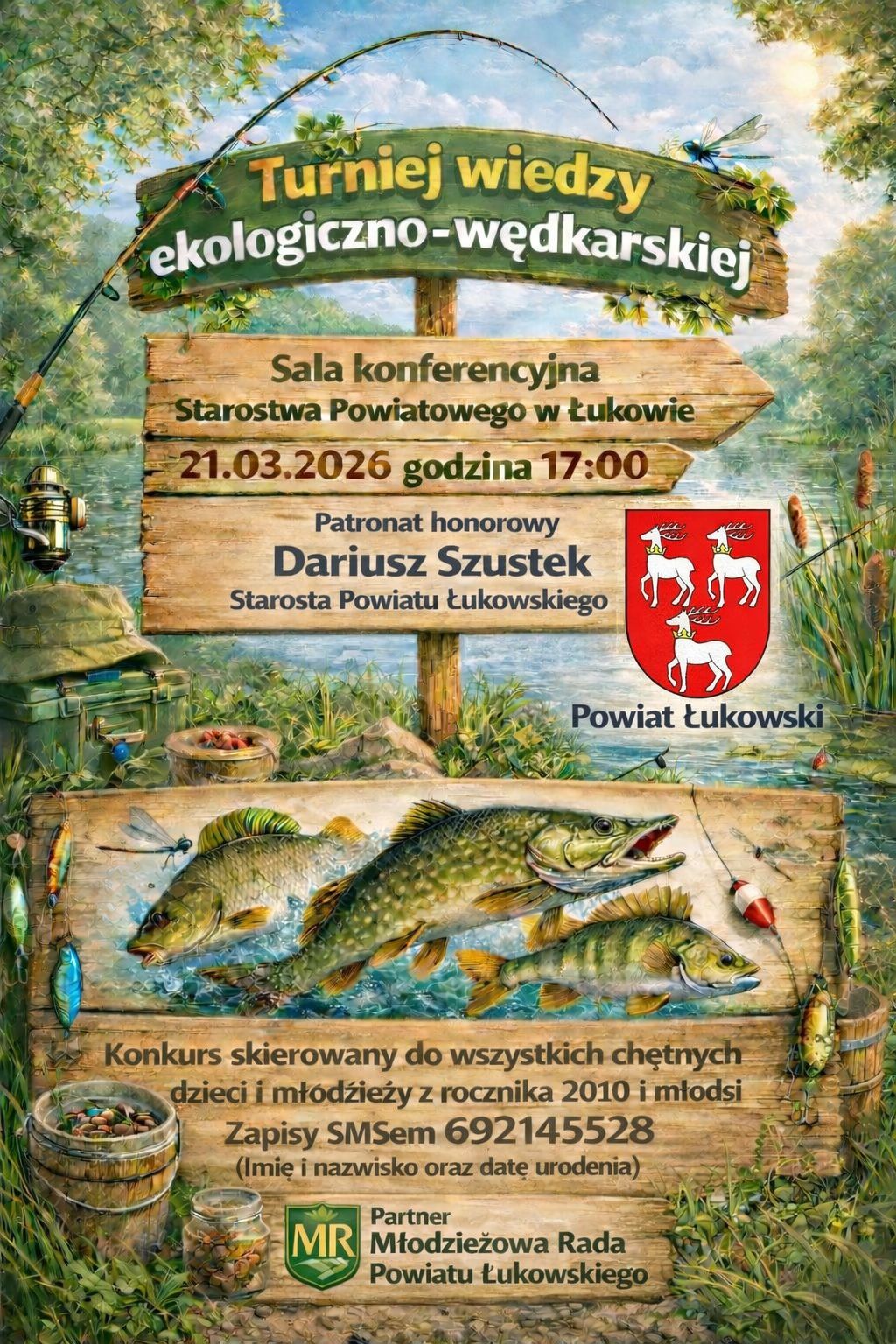 Turniej skierowany jest do dzieci i młodzieży z rocznika 2010 i młodszych. Jego uczestnicy zmierzą się z pisemnym testem, w którym będzie 26 pytań. Zwycięzcy zostaną wyłonieni w trzech kategoriach wiekowych: starszej z roczników 2010–2012, młodszej z roczników 2013–2015 oraz najmłodszej - 2016 i młodsi. Turniej Wiedzy Ekologiczno – Wędkarskiej odbędzie się w sali konferencyjnej Starostwa Powiatowego w Łukowie. Rozpocznie się o godzinie 17:00.Turniejowi patronuje starosta Dariusz Szustek. Partnerem wydarzenia jest Młodzieżowa Rada Powiatu Łukowskiego.