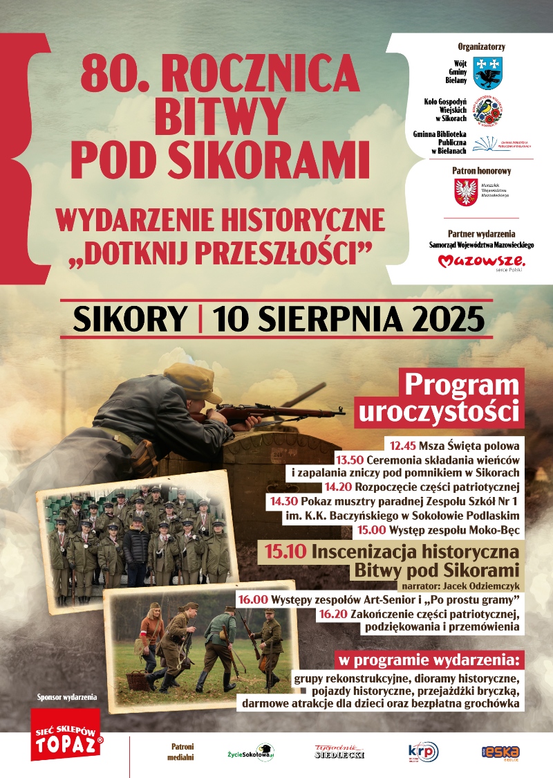 Obchody 80. rocznicy Bitwy pod Sikorami zaplanowano na 10 sierpnia w gminie Bielany. Z tej okazji przygotowana zostanie inscenizacja historyczna z udziałem blisko 100 rekonstruktorów.