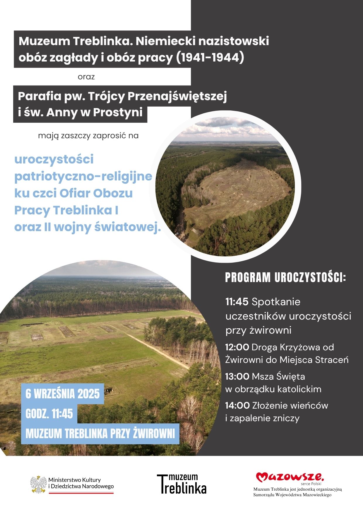 Muzeum Treblinka oraz Parafia pw. Trójcy Przenajświętszej i św. Anny w Prostyni zapraszają na uroczystości patriotyczno-religijne ku czci Ofiar Obozu Pracy Treblinka I oraz II wojny światowej. Wydarzenie odbędzie się w sobotę, 6 września na terenie Muzeum Treblinka, w pobliżu dawnej żwirowni.