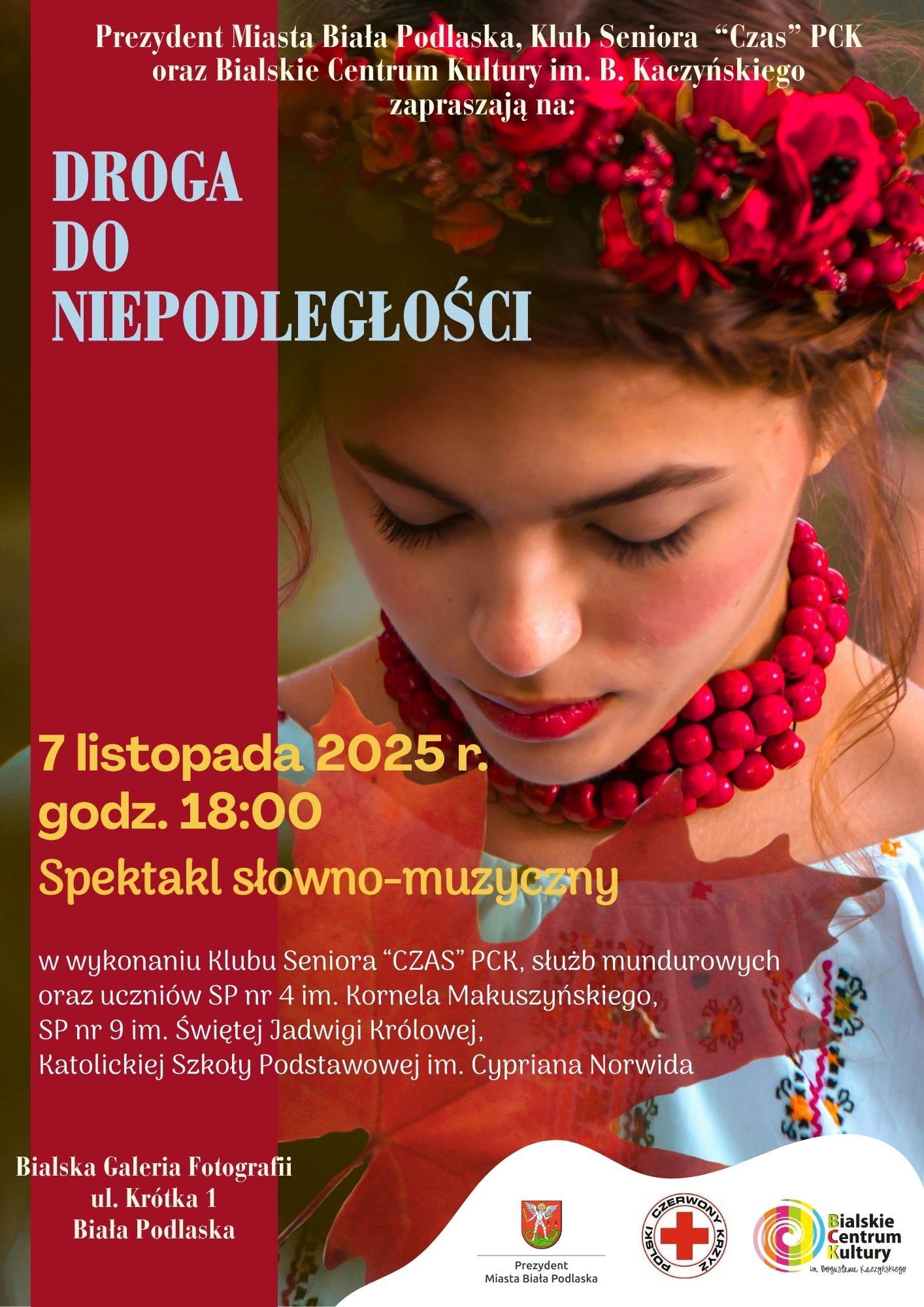 7 listopada o godz. 18:00 w Bialskiej Galerii Fotografii odbędzie się spektakl słowno-muzyczny „Droga do Niepodległości”. Wystąpią: Klub Seniora „Czas” PCK, służby mundurowe oraz uczniowie bialskich szkół – SP nr 4, SP nr 9 i Katolickiej Szkoły Podstawowej im. Cypriana Norwida.