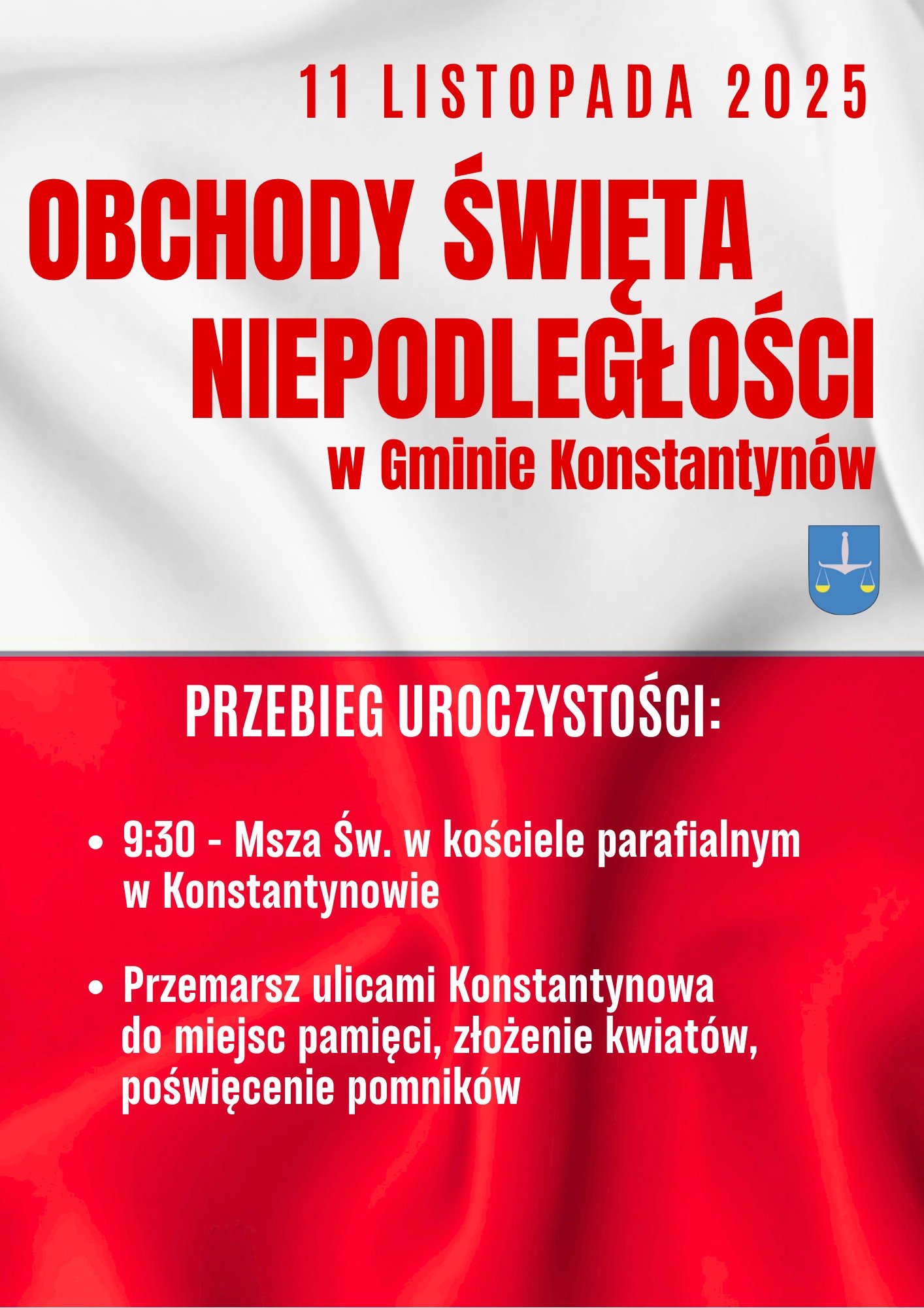 We wtorek, 11 listopada o godz. 9:30, odprawiona zostanie msza święta w kościele parafialnym, po której uczestnicy przejdą ulicami Konstantynowa do miejsc pamięci, gdzie złożą kwiaty i zapalą znicze.