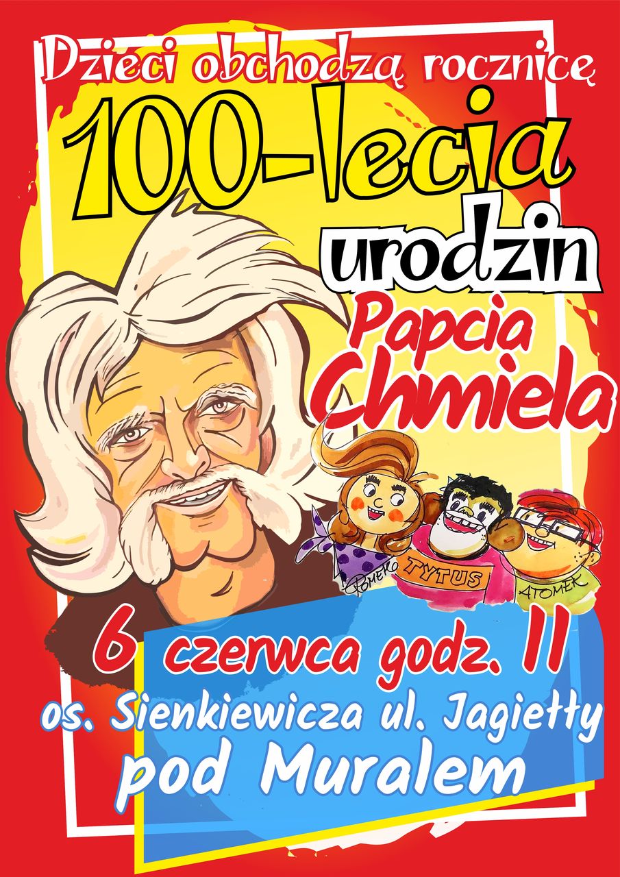 Z inicjatywy Andrzeja Zdrojewskiego we wtorek, 6 czerwca, w przeddzień setnych urodzin Henryka Jerzego Chmielewskiego odbędzie się w Łukowie przy muralu na osiedlu Sienkiewicza „urodzinowe spotkanie”. Na przyjęciu tym goście, którzy się tam pojawią, mają malować kwiaty dla Papcia Chmiela. Będzie też można obejrzeć archiwalne artykuły prasowe, książeczki komiksowe z przygodami Tytusa, Romka i Atomka oraz komiksy zamieszczane na łamach nieistniejącego już dziś „Świata Młodych”, pochodzące ze zbiorów Wirtualnego Muzeum Ziemi Łukowskiej.Urodzinowa impreza dla Papcia Chmiela rozpocznie się o godzinie 11.00. Zapraszają na nią Towarzystwo Fruwającej Muchy, Łukowska Spółdzielnia Mieszkaniowa oraz mieszkańcy Łukowa.