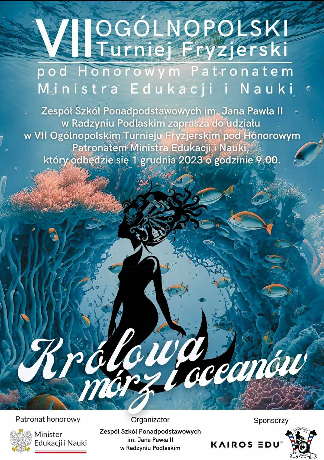 W piątek, 1 grudnia o godzinie 9:00 w hali widowiskowo- sportowej Zespołu Szkół Ponadpodstawowych im. Jana Pawła II w Radzyniu Podlaskim odbędzie się VII Ogólnopolski Turniej Fryzjerski pt. „Królowa mórz i oceanów”. Wezmą w nim udział uczniowie szkół fryzjerskich z całej Polski.