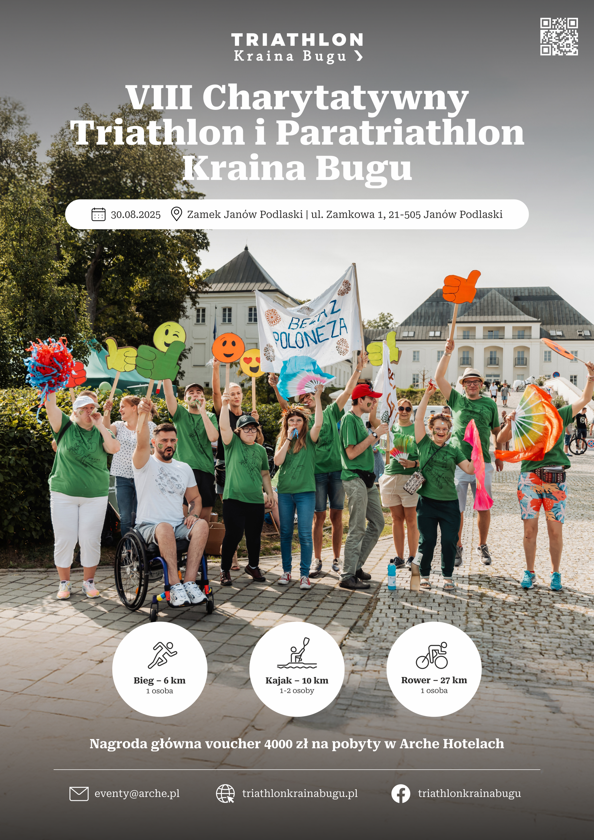 Trwa rejestracja drużyn do VIII Charytatywnego Triathlonu i Paratriathlonu Kraina Bugu, który odbędzie się 30 sierpnia. Okolice Zamku w Janowie Podlaskim po raz ósmy staną się areną sportowej rywalizacji, integracji i wsparcia społecznego. Inicjatywa organizowana przez Fundację Leny Grochowskiej oraz Arche łączy osoby pełnosprawne i z niepełnosprawnościami, promując ideę solidarności poprzez sport. Patronat medialny nad imprezą objęli Katolickie Radio Podlasie i portal podlasie24.pl.
