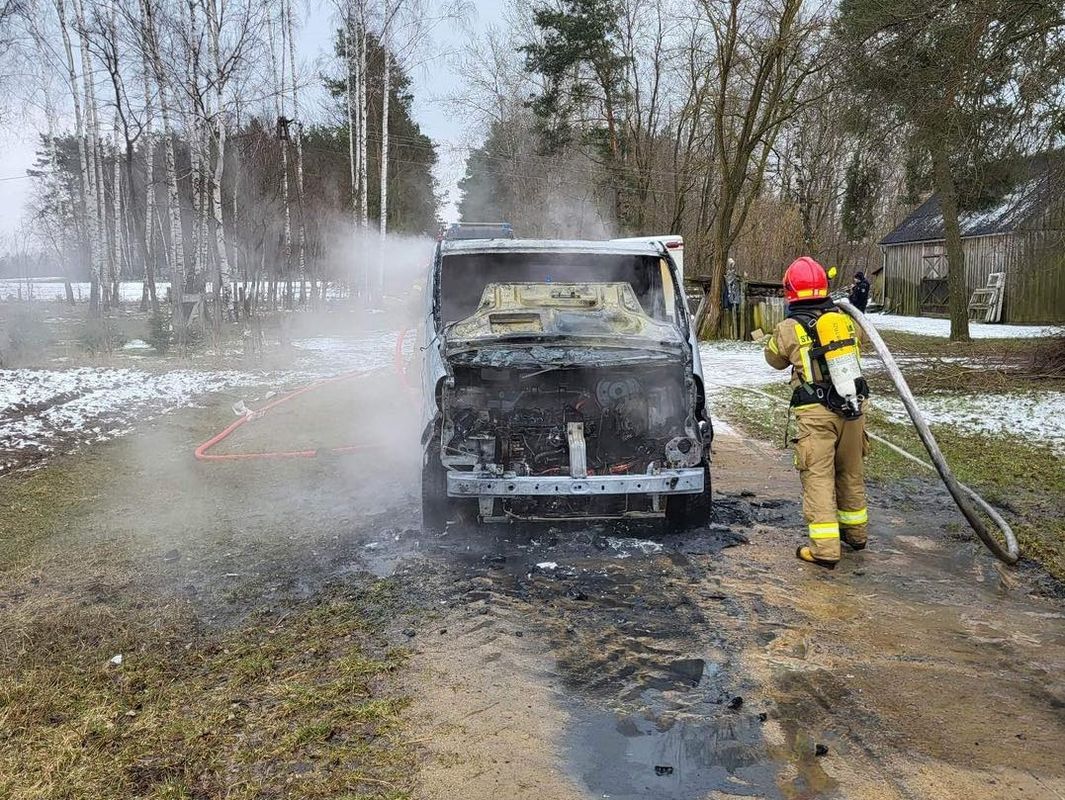 Pojazd znajdował się na polnej drodze, ogień nie zagrażał zabudowaniom. Nie było też osób poszkodowanych. Strażacy ugasili ogień dwoma prądami wody.