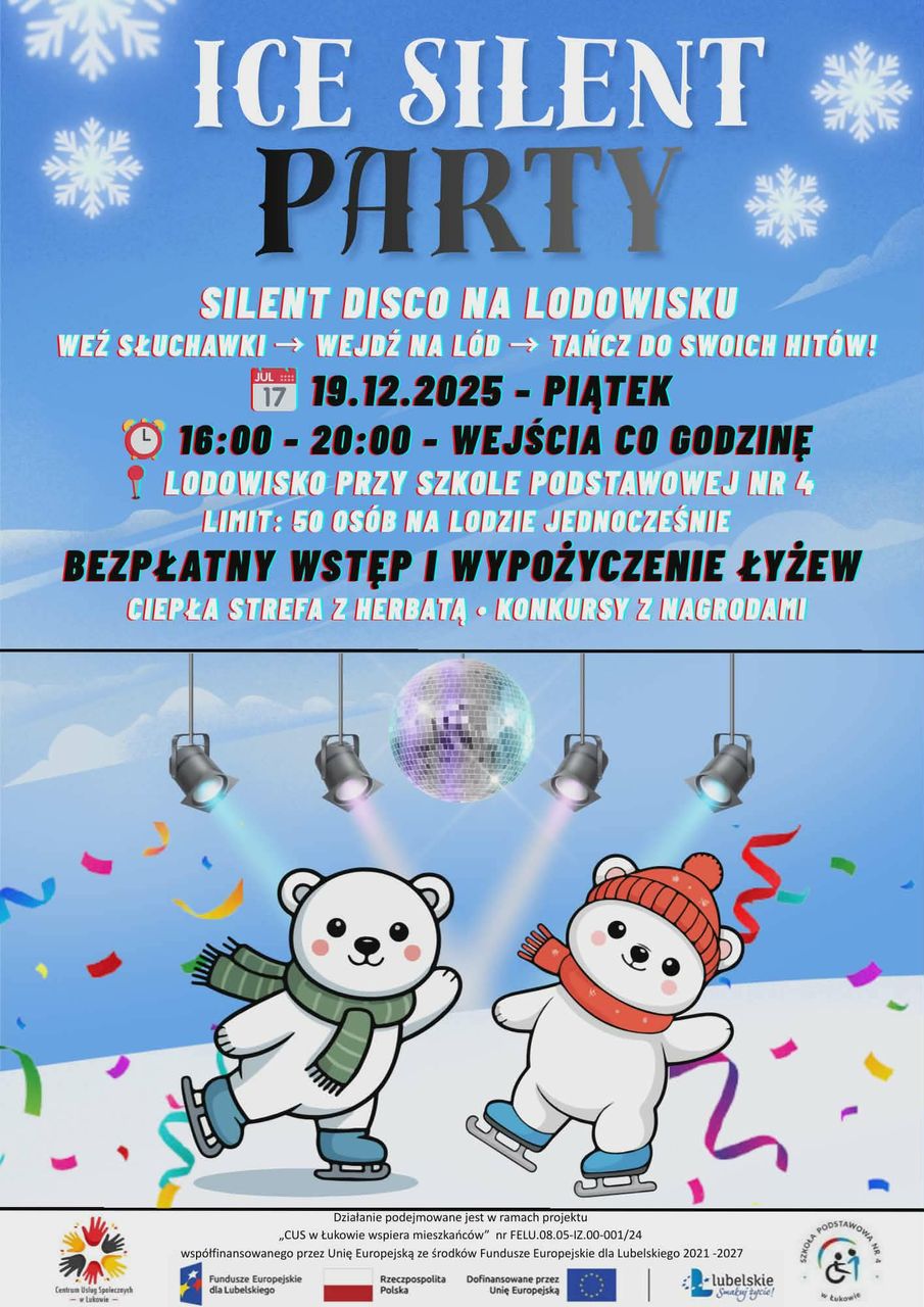 W dniu, w którym ruszy lodowisko odbędzie się tam „cicha impreza” - Ice Silent Party Łuków. Jej organizatorzy będą mieć dla wszystkich słuchawki z trzema ścieżkami muzycznymi do wyboru. Będzie więc można słuchać muzyki i tańczyć na lodzie. Będzie też ciepła strefa z herbatą i przekąskami oraz konkursy z nagrodami. Tego dnia wstęp na lodowisko będzie bezpłatny.