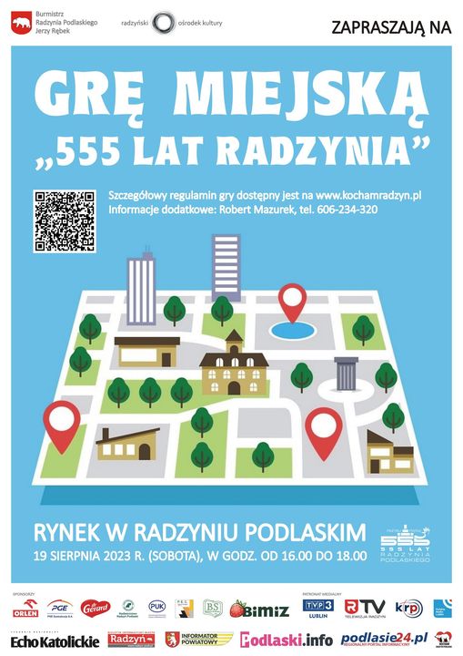W ramach Dni Radzynia 2023 odbędzie się niecodzienna gra miejska ulicami miasta. Szykuje się sobotnia rozrywka na świeżym powietrzu. Patronat medialny nad wydarzeniem sprawuje portal Podlasie24.pl oraz Katolickie Radio Podlasie.
