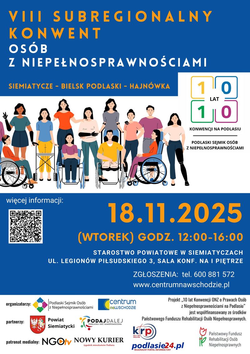 Organizatorami VIII Subregionalnego Konwentu Osób z Niepełnosprawnościami są: Podlaski Sejmik Osób z Niepełnosprawnościami, Stowarzyszenie „Centrum na Wschodzie” oraz Starosta Siemiatycki. Lokalnymi partnerami wydarzenia są także: Podlaska Sieć Samopomocowa „Podaj Dalej” oraz Stowarzyszenie Hajnowska Otwarta Przestrzeń.