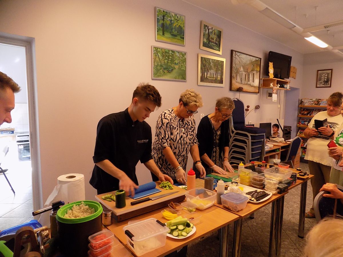 W czwartek, 21 września w Gminnej Bibliotece Publicznej w Grębkowie odbyły się warsztaty kulinarne ,,Smaki świata”. Na zajęciach seniorzy poznawali historię sushi i nauczyli się przyrządzania jego podstawowych form w różnych stylach.