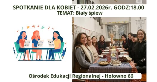 W Hołownie po raz kolejny odbędzie się wyjątkowe spotkanie skierowane do wszystkich kobiet, które chciałyby oderwać się od codziennych obowiązków, zrelaksować się i spędzić czas w miłym towarzystwie. W programie: kawa, rozmowy, coś pysznego do zjedzenia, twórcze aktywności, a przede integracja. Najbliższe spotkanie poświęcone będzie nauce Białego Śpiewu z Martą Sterlus – śpiewaczką pieśni tradycyjnych, ubiegłoroczną laureatką I nagrody na Ogólnopolskim Festiwalu Kapel i Śpiewaków Ludowych.