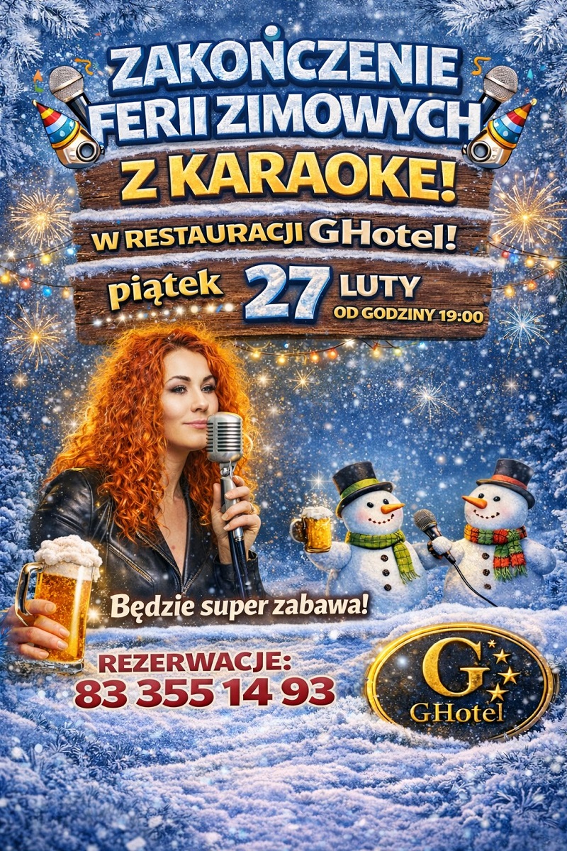 Na zakończenie ferii nie zabraknie muzycznej energii. Organizatorzy zapraszają na wspólne karaoke. Będzie to doskonała okazja, by zaprezentować swój talent wokalny, pośmiać się i spędzić czas w radosnej atmosferze.