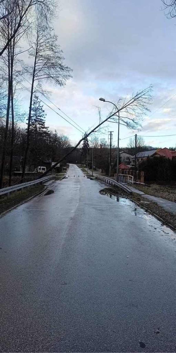 Na ul. Słowiczyńskiej w Siemiatyczach interweniował zastęp JRG Siemiatycze. Strażacy zabezpieczali miejsca zdarzenia gdzie złamane drzewo było zawieszone na linii energetycznej. Działania przejęli elektrycy za pomocą swoich sił i środków. Drzewo usunięto z linii energetycznej.Kolejne zdarzenie miało miejsce na drodze krajowej nr 19 w miejscowości Wiercień Duży (trasa Siemiatycze - Białystok). Strażacy usunęli drzewo z drogi, pocięli je i złożyli w przydrożnym rowie.
