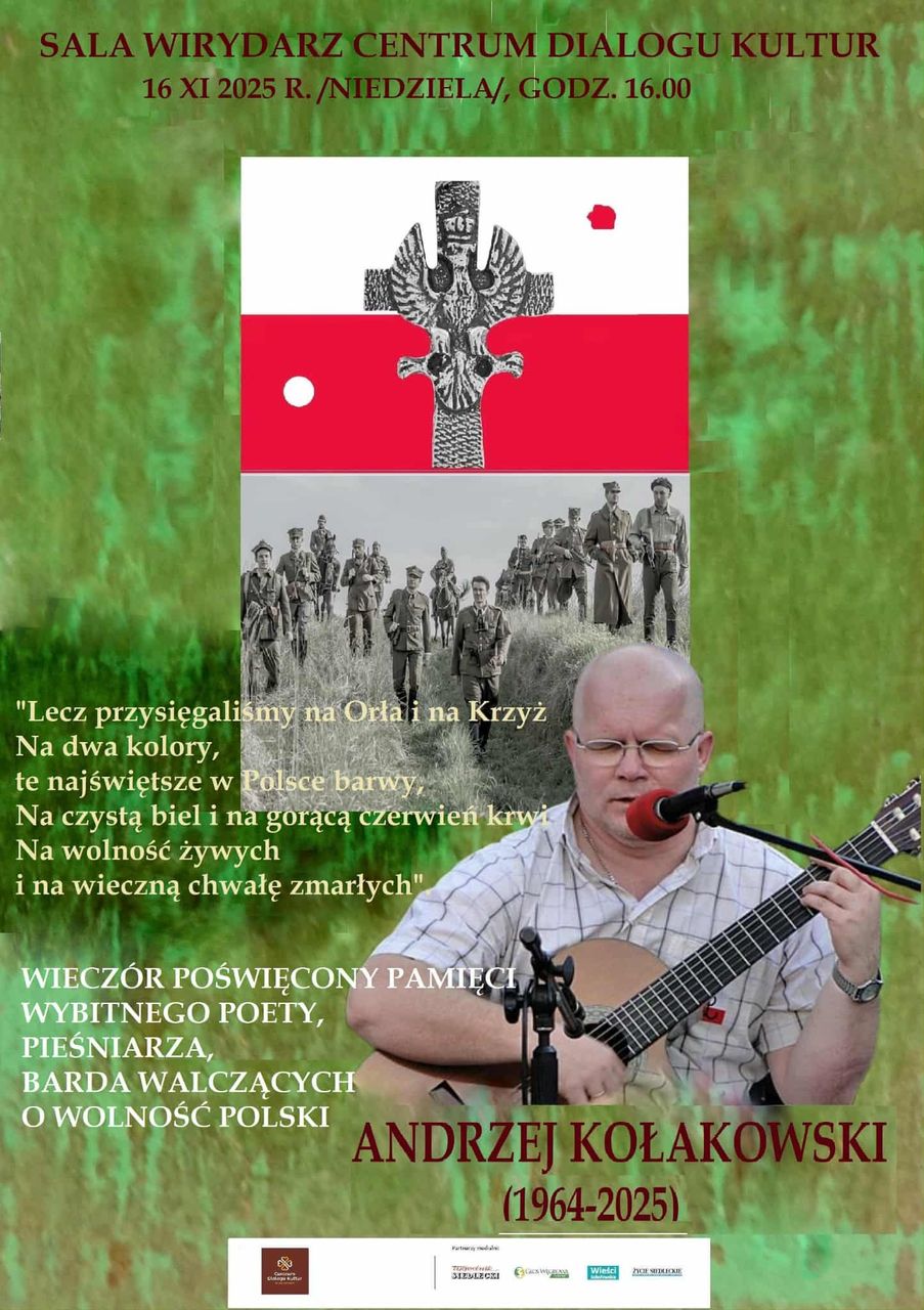 W najbliższą niedzielę, 16 listopada w Centrum Dialogu Kultur w Węgrowie odbędzie się wieczór poświęcony pamięci Andrzeja Kołakowskiego: opozycjonisty, poety i pieśniarza, barda patriotów walczących o wolność Polski. Gościem spotkania będzie przyjaciel barda, Andrzej Brzezik.