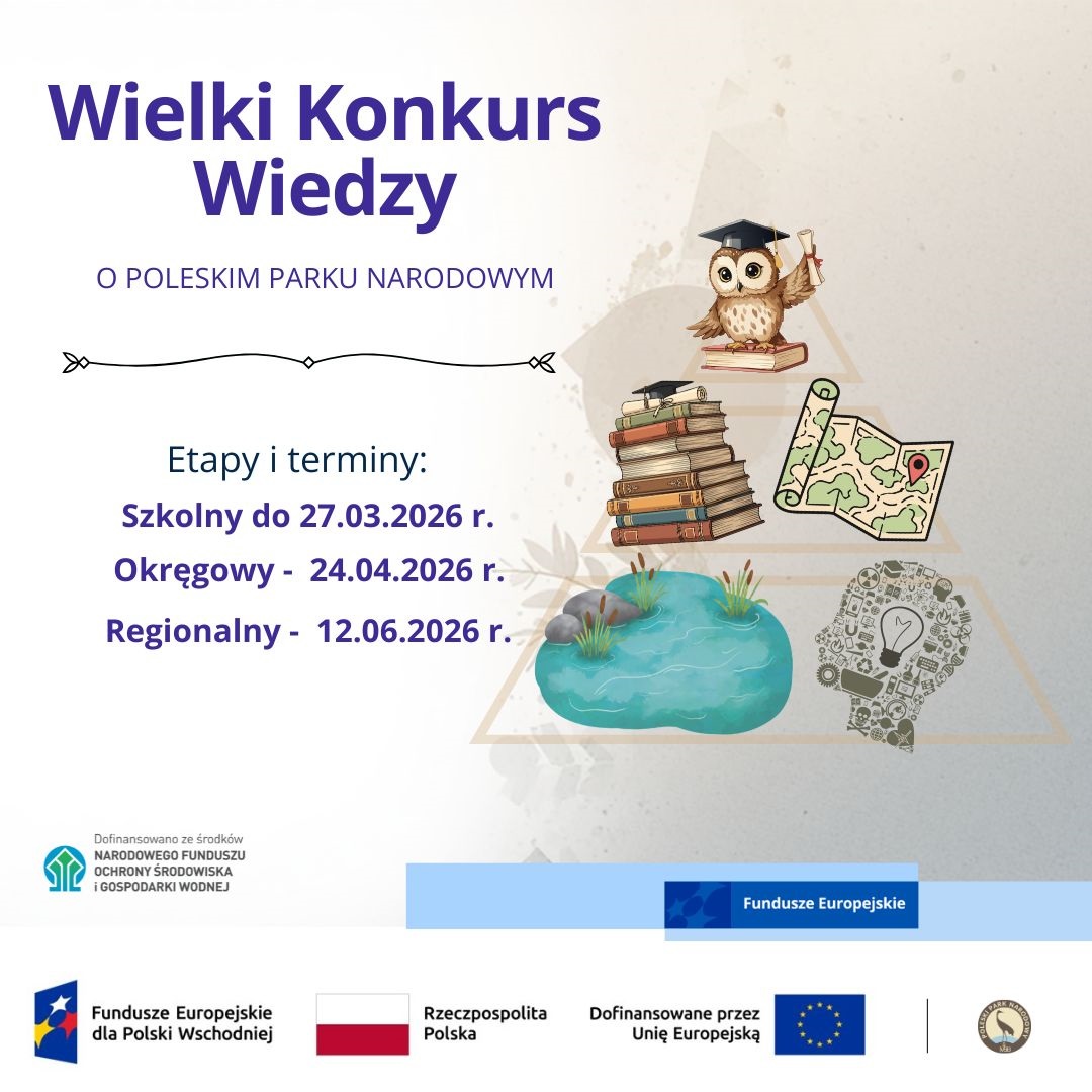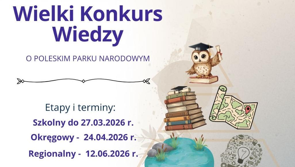 Poleski Park Narodowy zaprasza uczniów szkół podstawowych do udziału w Wielkim Konkursie Wiedzy o Poleskim Parku Narodowym. Inicjatywa skierowana jest do dwóch grup wiekowych: uczniów klas III–V oraz VI–VIII szkoły podstawowej.