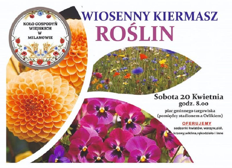 Mamy połowę kwietnia, a więc sezon na sadzenie roślin można uważać za otwarty. Dlatego już w najbliższą sobotę, 20 kwietnia, na placu gminnego targowiska w Milanowie odbędzie się Wiosenny Kiermasz Roślin, podczas którego będzie można nabyć sadzonki krzewów, kwiatów, warzyw i ziół.