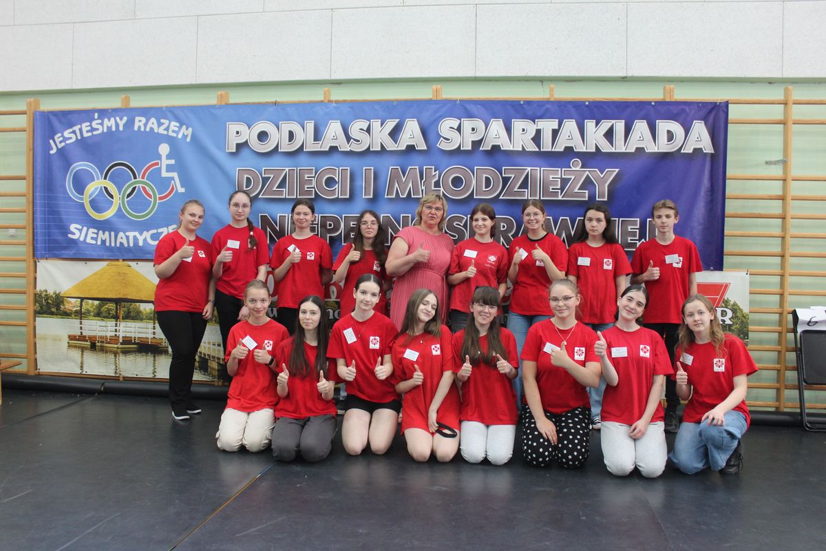 Są tu od lat, wiedzą co robić, znają swoje zadania i wywiązują się z nich z uśmiechem i pełnym zaangażowaniem. Każda drużyna biorąca udział w Spartakiadzie miała swojego opiekuna – wolontariusza, który jest z nimi od pierwszych kroków podczas Marszu Godności, poprzez ślubowanie, konkurencje sportowe i wręczanie medali aż po ostatnie pamiątkowe zdjęcia.Rolę wolontariuszy doceniają organizatorzy Spartakiady. Urszula Obrycka, dyrektor Zespołu Szkół w Siemiatyczach podkreśla, że to osoby, na które zawsze można liczyć. Podlaska Kurator Oświaty Agnieszka Krokos-Janczyło zwraca uwagę, że to najlepsza lekcja empatii jakiej można doświadczyć.