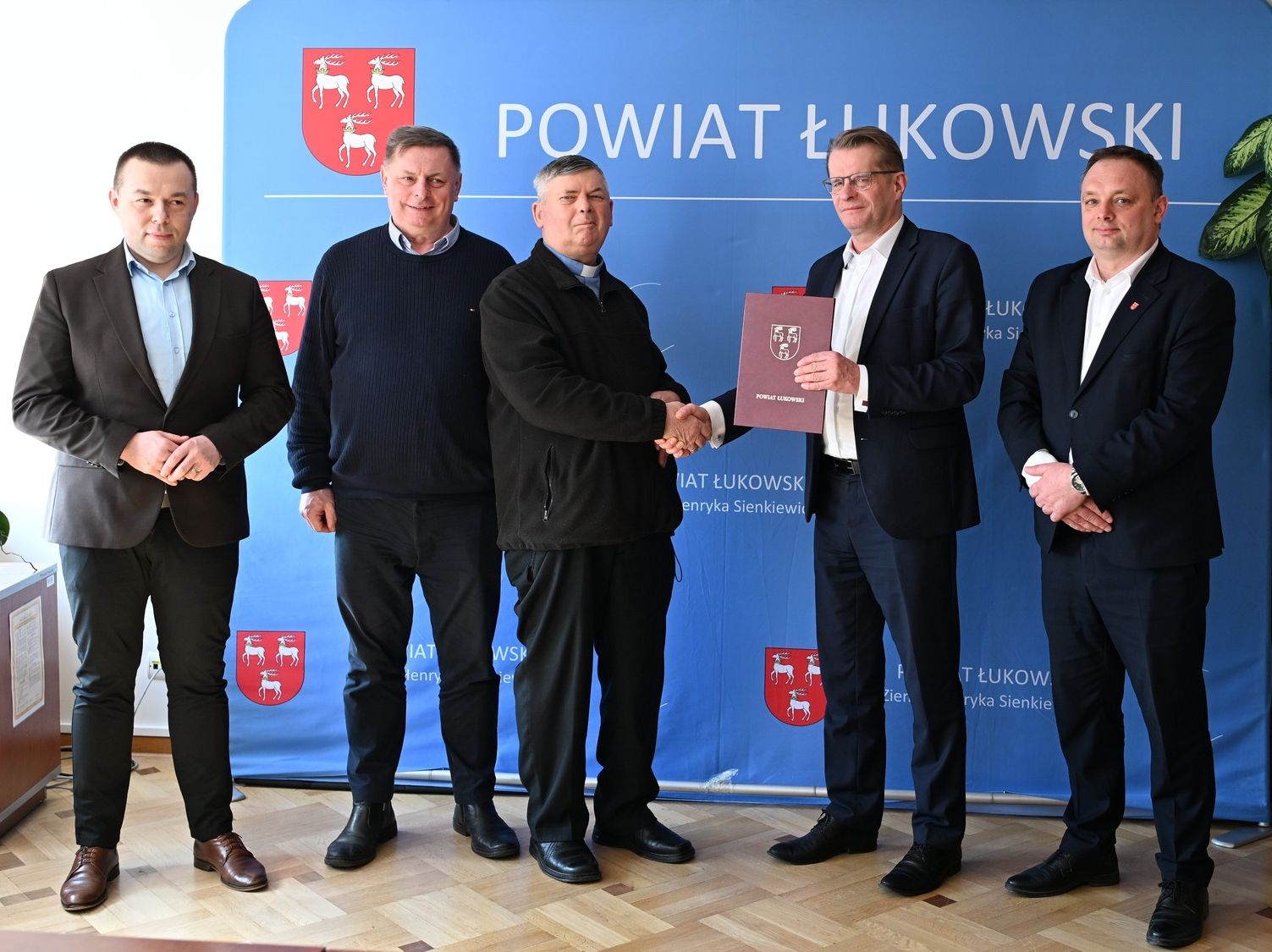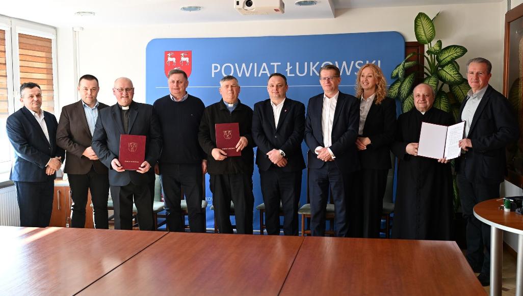 Spotkanie w Starostwie Powiatowym i podpisanie umów odbyło się 11 marca. Wsparcie otrzymały parafie: Dziesięciu Tysięcy Rycerzy Męczenników w Trzebieszowie, Świętej Anny w Jeleńcu oraz Najświętszego Serca Pana Jezusa w Wojcieszkowie. W imieniu Zarządu Powiatu Łukowskiego umowy podpisali: starosta Dariusz Szustek, wicestarosta Sławomir Rzymowski oraz skarbnik powiatu Monika Wodyk-Netczuk.Dotacja dla parafii w Trzebieszowie przeznaczona zostanie na prace remontowe i konserwatorskie polegające na renowacji zewnętrznych drzwi wejściowych do kościoła. Wartość dofinansowania z budżetu powiatu łukowskiego wynosi 50 tys. zł, a wkład własny parafii to 30 tys. zł.