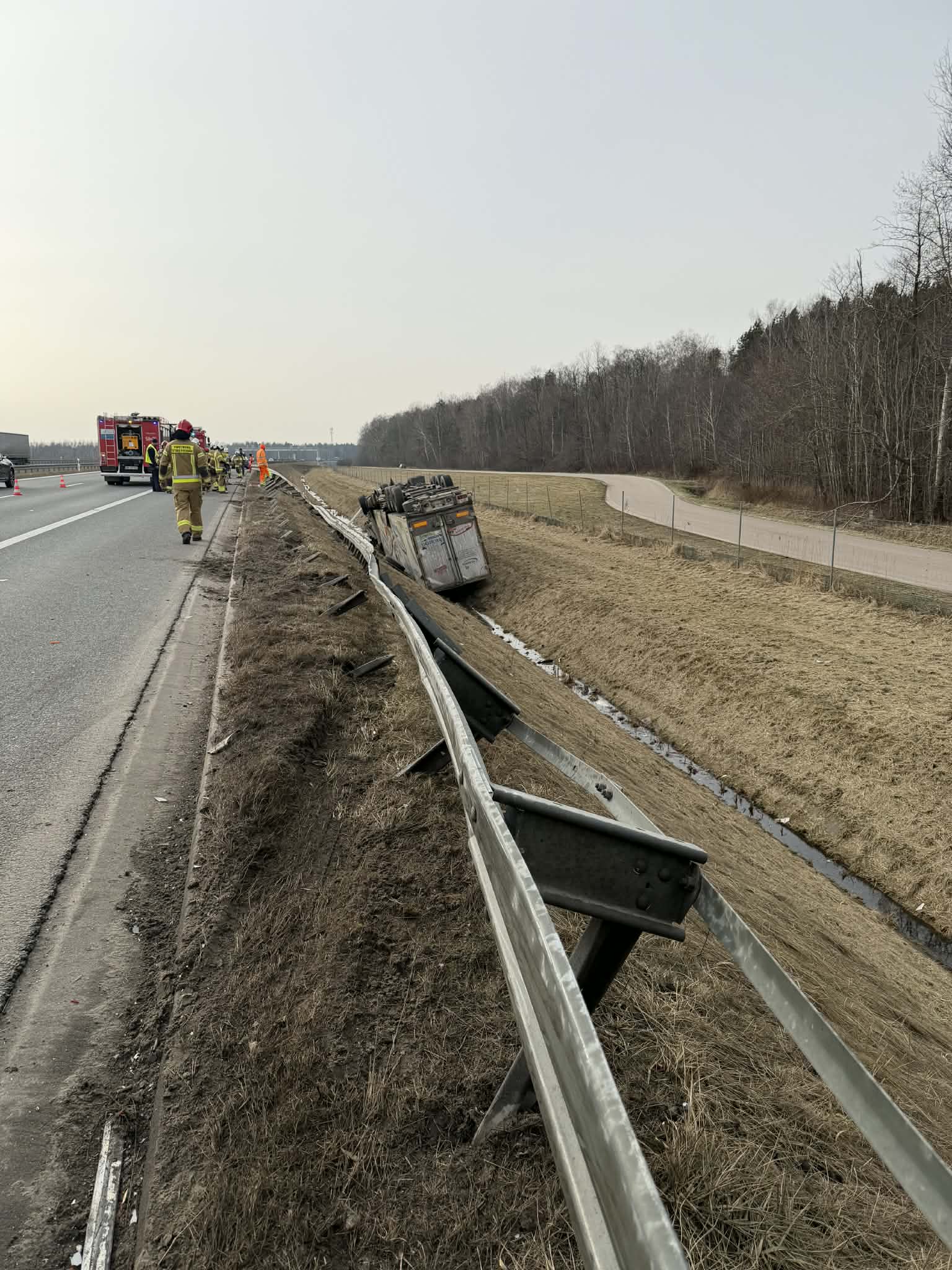 Na autostradzie A2, na 511. kilometrze w kierunku Warszawy, po godzinie 12.30 doszło do poważnego wypadku z udziałem samochodu osobowego i ciężarowego. W wyniku zderzenia pojazd ciężarowy dachował i przewrócił się na jezdnię. Do akcji zadysponowano trzy zastępy straży pożarnej, patrol policji oraz zespół ratownictwa medycznego.