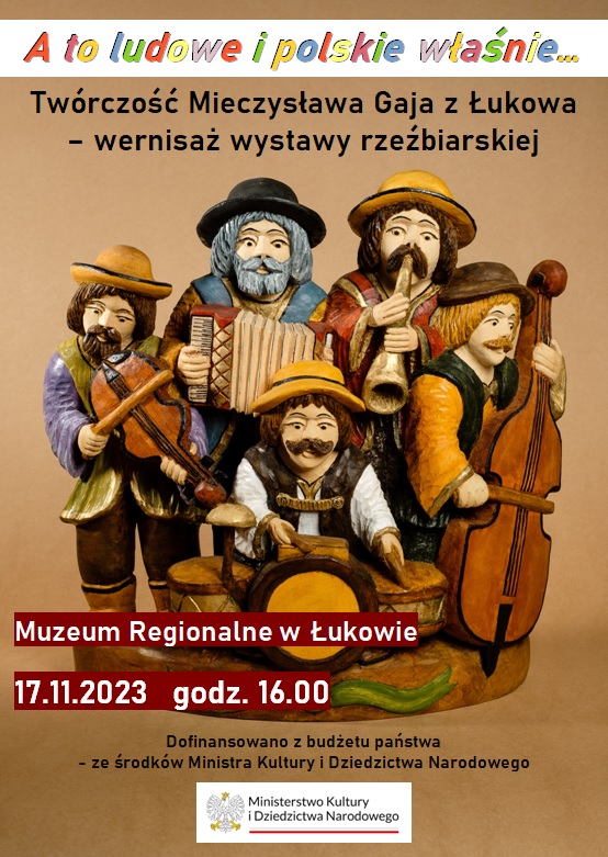 Wernisaż wystawy prac Mieczysława Gaja już w piątek 17 listopada. Początek godzina 16.00. Podczas wystawy będzie też zapoznać się z publikacją wydaną ostatnio przez muzeum, która nosi tytuł „A to ludowe i polskie właśnie ... Twórczość Mieczysława Gaja z Łukowa”, i o której informację znajdziecie Państwo TUTAJ