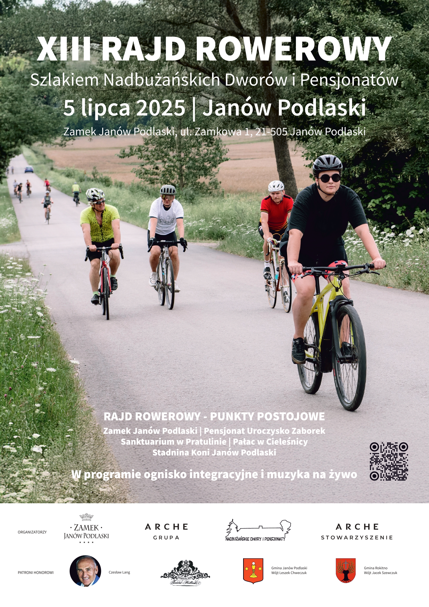 Zapisy na XIII Rajd Rowerowy Szlakiem Nadbużańskich Dworów i Pensjonatów już trwają. Rajd, który odbędzie się 5 lipca, wystartuje z Zamku w Janowie Podlaskim. Organizatorami są Stowarzyszenie Nadbużańskich Dworów i Pensjonatów, Grupa Arche oraz Stowarzyszenie Arche. Celem rajdu jest promocja regionu nadbużańskiego oraz zdrowego stylu życia, a także umożliwienie uczestnikom odkrywania piękna Podlasia.