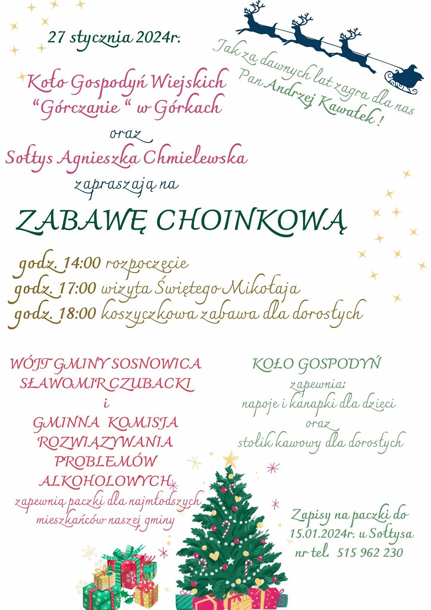 Zabawy choinkowe w Górkach w gm. Sosnowica to tradycja sięgająca dawnych czasów. Na spotkanie, łączące pokolenia, przychodziła cała wieś. Zwyczaj ten postanowiło odrodzić Koło Gospodyń Wiejskich „Górczanie” oraz sołtys wsi Agnieszka Chmielewska organizując, pierwszy raz po długiej przerwie, zabawę choinkową dla wszystkich mieszkańców. Wydarzenie odbędzie się w najbliższą sobotę, 27 stycznia, w świetlicy wiejskiej w Górkach.