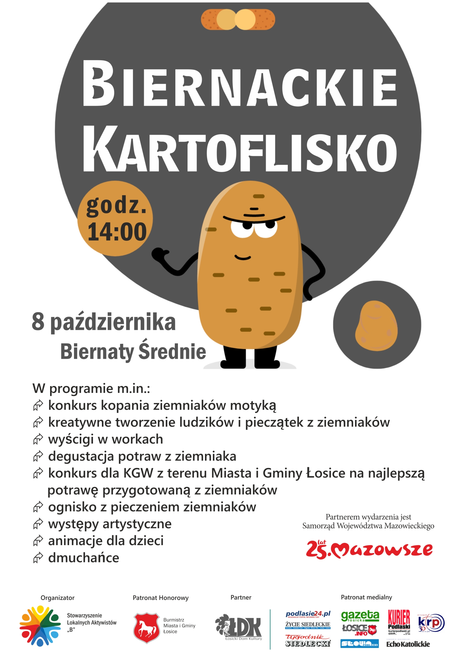 W Biernatach Średnich w najbliższą niedzielę, 8 października zostanie zorganizowane „Biernackie kartoflisko”. Impreza plenerowa będzie skupiona wokół ziemniaków.