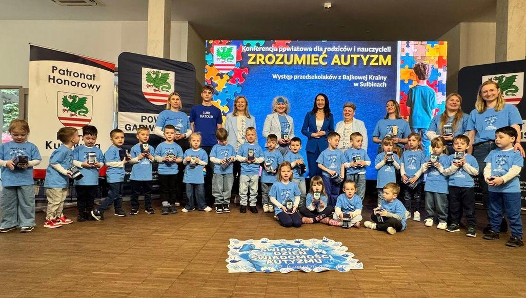 Konferencja stała się przestrzenią do wymiany doświadczeń, zdobywania wiedzy oraz budowania wspólnego podejścia do wsparcia dzieci i młodzieży w powiecie garwolińskim. Jej celem było zwiększenie świadomości społecznej na temat autyzmu oraz zaprezentowanie praktycznych form pomocy dostępnych lokalnie.Konferencję rozpoczął poruszający występ dzieci z Publicznego Przedszkola „Bajkowa Kraina” w Sulbinach. Mali artyści nie tylko stworzyli wyjątkową atmosferę, ale także przekazali ważne przesłanie poprzez słowa piosenki: