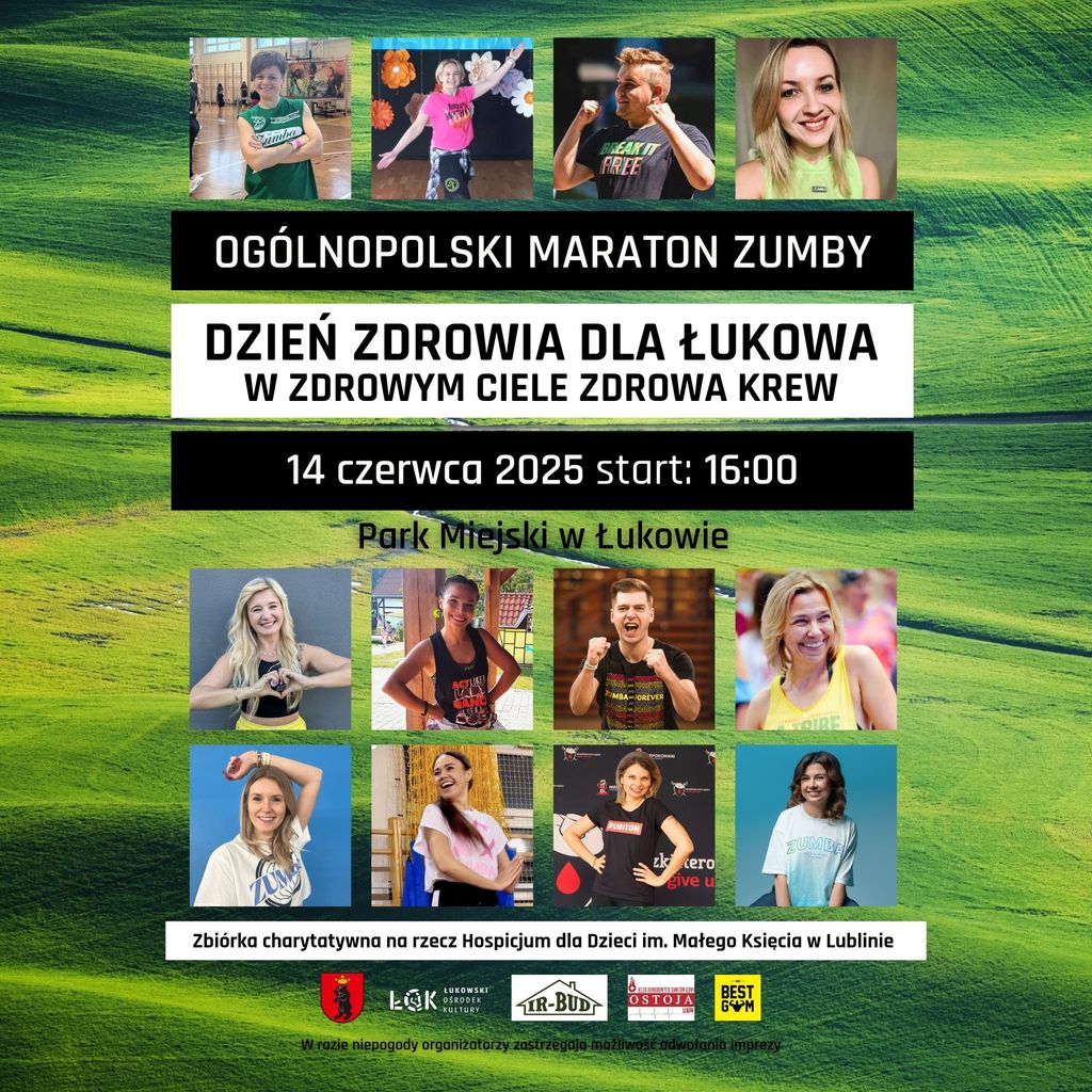 „W zdrowym ciele zdrowa krew” – pod takim hasłem już w najbliższą sobotę, 14 czerwca, w Łukowie odbędzie się Ogólnopolski Maraton Zumby połączony ze zbiórką charytatywną na rzecz Hospicjum dla Dzieci im. Małego Księcia w Lublinie.