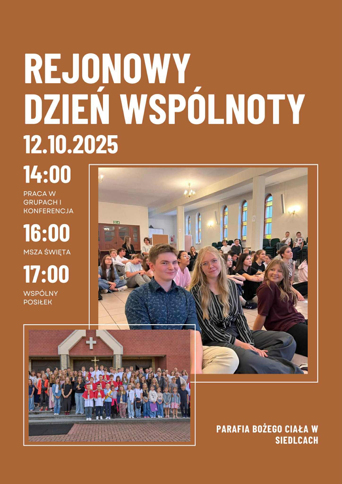To ważne wydarzenie w życiu wspólnoty oazowej, które gromadzi uczestników z całego regionu, by wspólnie przeżyć czas modlitwy, formacji i radości ze spotkania. W najbliższą niedzielę, 12 października, w Parafii Bożego Ciała w Siedlcach odbędzie się Rejonowy Dzień Wspólnoty Ruchu Światło-Życie. Do udziału zaproszeni są wszyscy członkowie Ruchu oraz sympatycy.