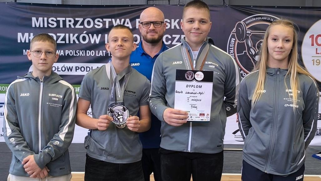 Mistrzostwa Polski do lat 15 w podnoszeniu ciężarów odbywały się od 24 do 26 października w Hali Sportowej Zespołu Szkół nr 1 im. Krzysztofa Kamila Baczyńskiego w Sokołowie Podlaskim. W rywalizacji wzięło udział 178 zawodniczek i zawodników z 60 klubów z całej Polski. Wśród uczestników nie zabrakło reprezentantów Olimpijczyka Łuków, którzy zaprezentowali się z bardzo dobrej strony, zdobywając dwa srebrne medale.W kategorii wagowej do 55 kg Paweł Młynarczyk wywalczył srebro z wynikiem 143 kg w dwuboju (63 kg w rwaniu i 80 kg w podrzucie). Paweł jest uczniem Zespołu Szkół nr 1 w Łukowie. Drugim srebrnym medalistą został Marcel Wardziak-Mąka, który w kategorii do 96 kg uzyskał wynik 207 kg w dwuboju (91 kg rwanie, 116 kg podrzut). Marcel jest uczniem I LO w Łukowie.