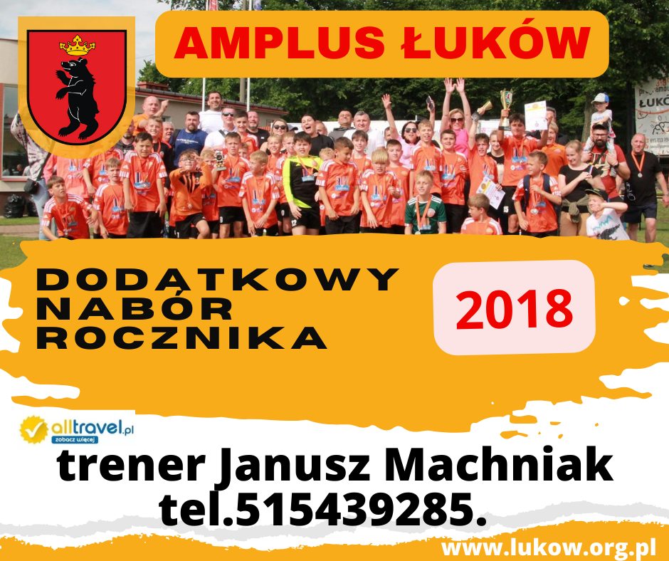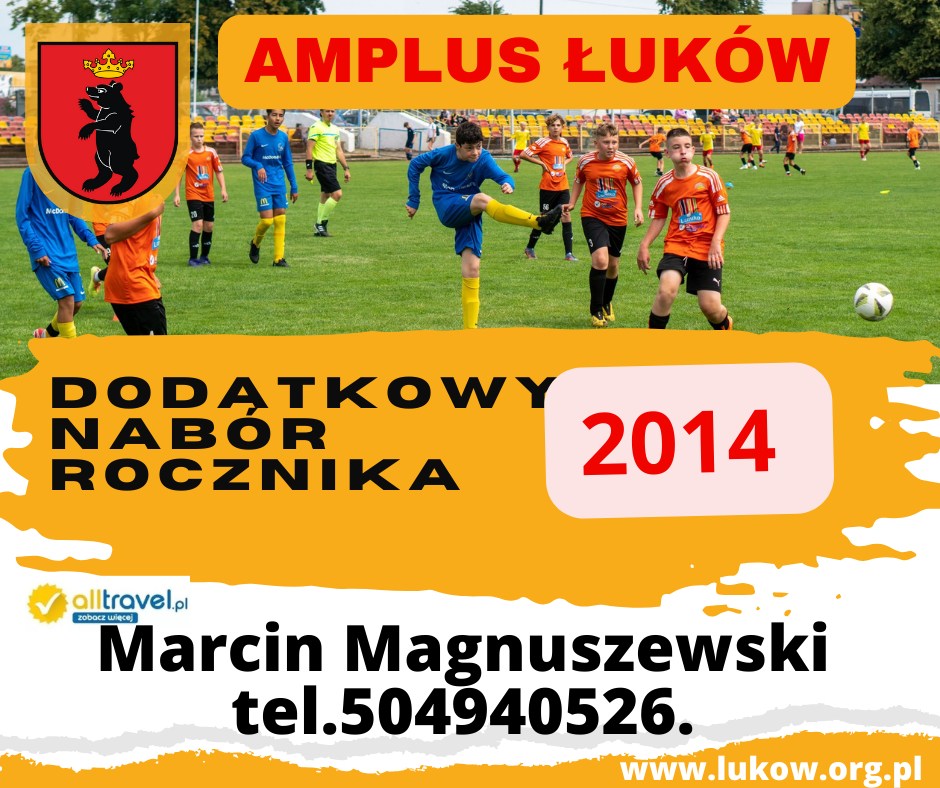 Akademia Młodego Piłkarza AMPlus Łuków prowadzi dodatkowy nabór dzieci z roczników 2014 - 2020. Zapisy przyjmują trenerzy poszczególnych roczników.