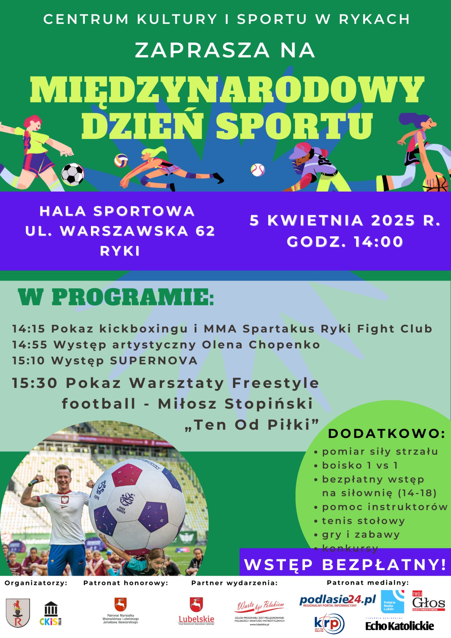 Międzynarodowy Dzień Sportu zbliża się wielkimi krokami. Centrum Kultury i Sportu w Rykach zaplanowało dla mieszkańców wyjątkowe wydarzenie, które odbędzie się w sobotę, 5 kwietnia, o godzinie 14:00 w Hali Sportowej przy ul. Warszawskiej 62 w Rykach.