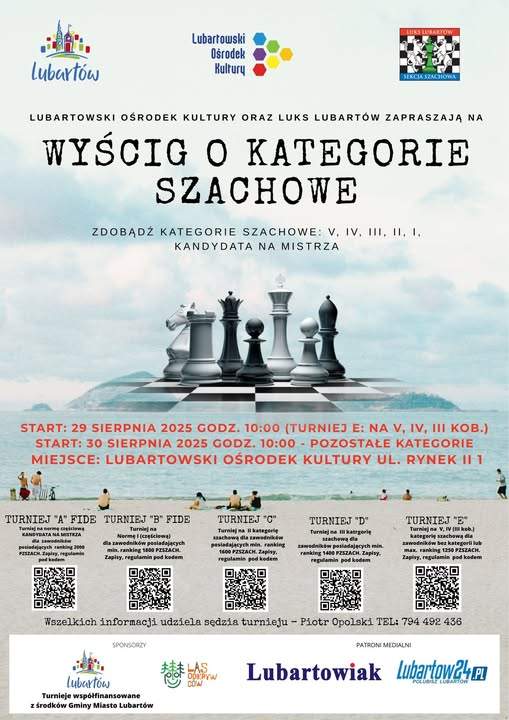 W dniach 29 i 30 sierpnia w Lubartowie odbędzie się Wyścig o kategorie szachowe. Do rozgrywek zapraszają Lubartowski Ośrodek Kultury i LUKS Lubartów.